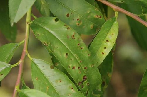 细菌性穿孔病的病原菌,叶片在5月发病,夏季干旱病害发生缓慢,至秋雨多时又发生后期侵染。