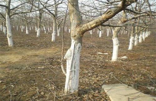 果树涂白有什么作用?果树涂白剂怎样使用才正确?据悉,冬季气温低,冷空气下沉,果树树干易受到冻害,部分害虫病菌在树干表皮的裂缝翘皮里潜藏越冬,此时给果树树干刷上涂白剂,可有效地防御冻害、日灼、阻止或杀灭在树干上越冬的病虫害
